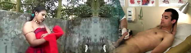 Innocent Indian woman talked into her first threesome fuck