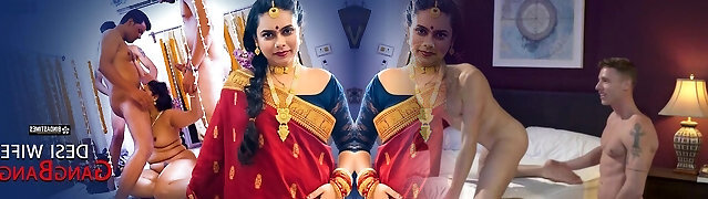 Desi Indian Freshly Married Milf Wife Gang-fuck with Her Husband's Friend ( Hindi Audio )