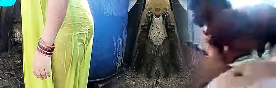 desi Bhabhi ne drizzle se Devar ko nehla diya chudai ke waqt , jaldi jaldi chodo pani ane wala hey