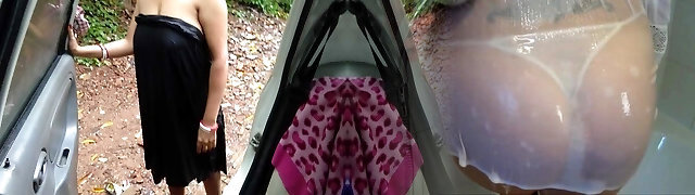While driving she wants to play a grubby game, risky public outdoor sucking and penetrating Gf