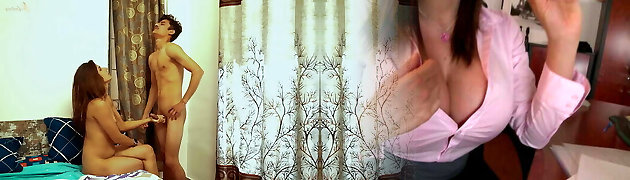 A sexy lady house owner seduces her teenager subjugated for sex