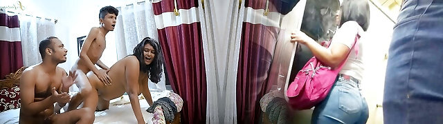 FFM Anal casting young amateur indian slut with puny tits