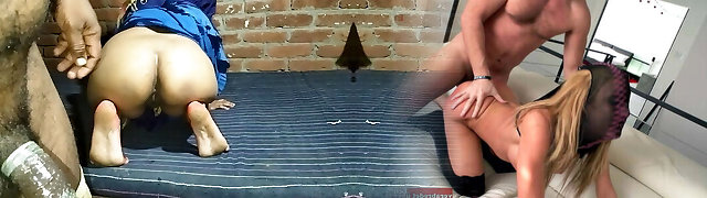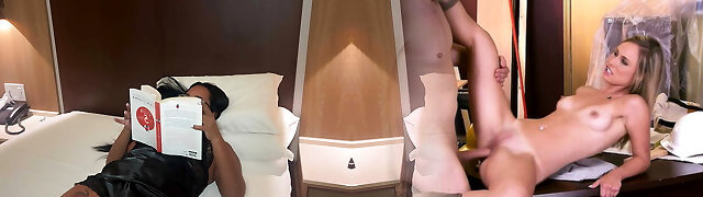 Nosey Goddess slut blonde wife cheating husband dressed as a bunny hairy pussy licking and romping Black man meat