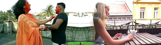 18yrs Tamil fellow fucking two beautiful milf bhabhis together at Holi jamboree