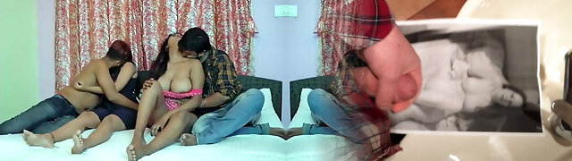 Beautiful and puny busty Indian ladies fucking me in foursome