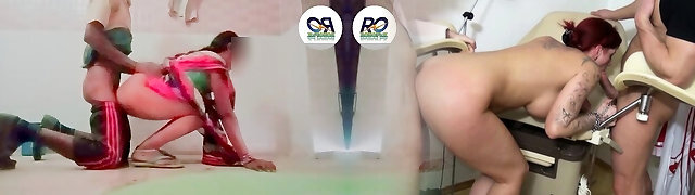 cuckold wife urinating in the face and on the jaws of the cuckold after getting creampied by another man in front of him
